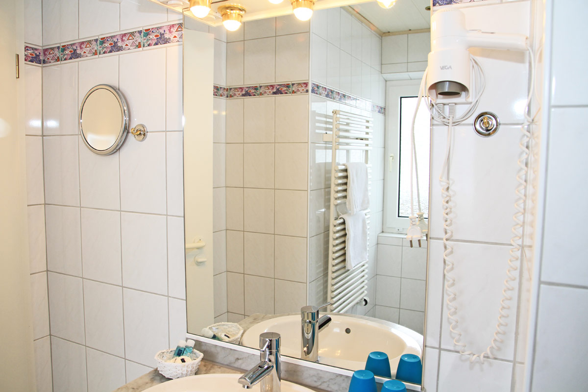 Jedes dieser Zimmer hat ein eigenes Badezimmer und eine kleine Sitzecke. LCD-TV, Wasserkocher, Safe und WLAN sind vorhanden. Die Bäder sind alle mit Dusche, WC und Föhn ausgestattet.
