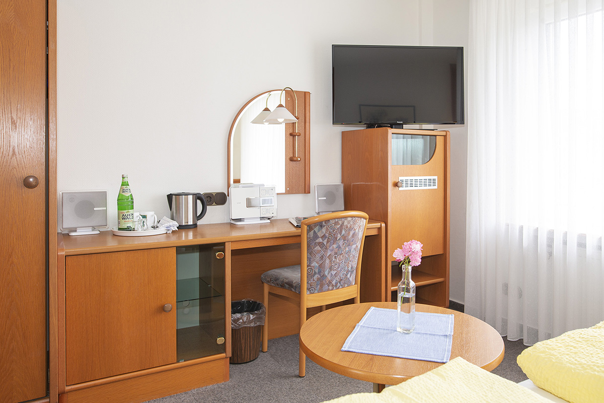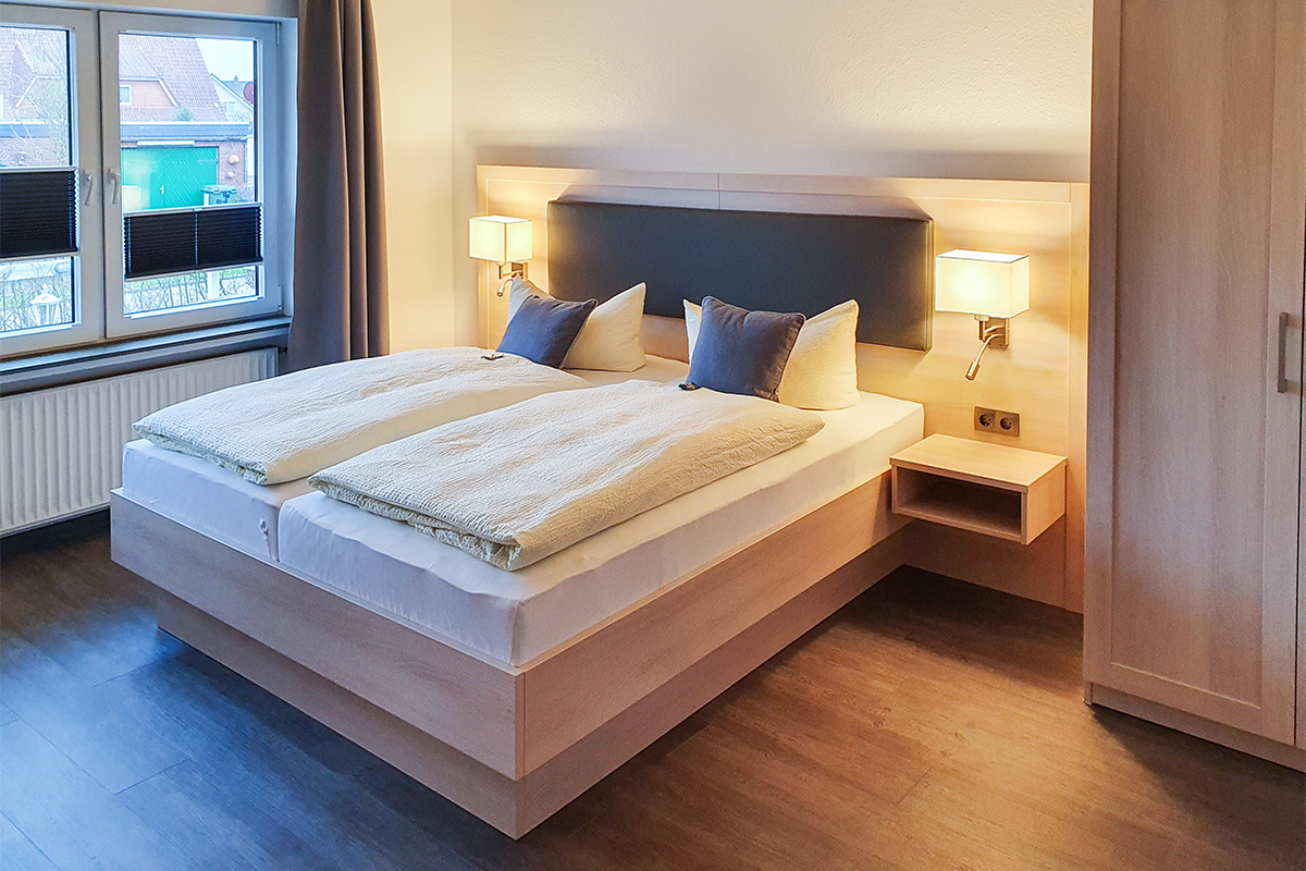 Als Doppelzimmer bieten wir die Zimmer der „Kategorie 2” an. Sie haben eine hochwertigere Einrichtung und bieten mehr Platz als die „Kategorie 1”-Zimmer.